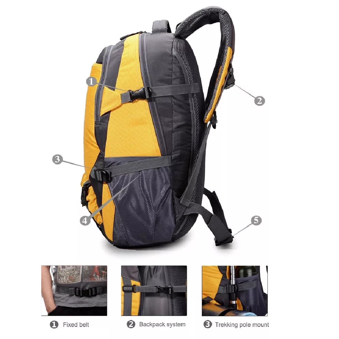جنس پارچه این کوله پشتی از پلی استر باکیفیت و ضد آب می باشد، ابعاد کوله 58x358x20 است و حجم آن 45 لیتری است. وجود بافت لانه زنبوری و پد عرق گیر در پشت کوله سبب عبور جریان هوا و جلوگیری از عرق کردن بدن می شود. بند کمری بسیار مقاوم آن توازن بسیار خوبی را در وزن آن ایجاد می کند. بندهای اضافی موجود در جلو و پایین کوله موجود است تا به راحتی کیسه خواب، زیر انداز، پتو، چادر و .... را روی کوله ببندید. این کوله دارای 3جیب زیپدار در جلو و دو جیب در دوسمت کوله برای قرار دادن قمقمه و شیشه آب می باشد. وجود جیب های زیاد سبب نظم دهی وسایل و جادهی بهتر آنها می شود. در قسمت داخلی کوله فضای قرار دادن لپ تاپ تا اندازه 15.6 نیز وجود دارد.