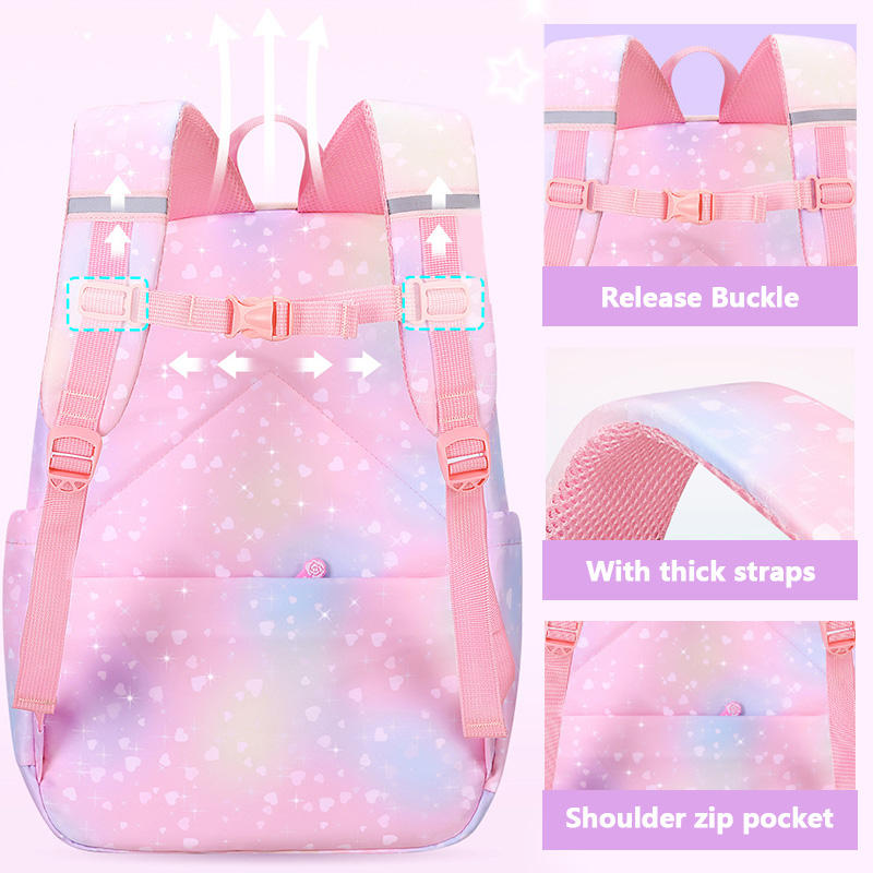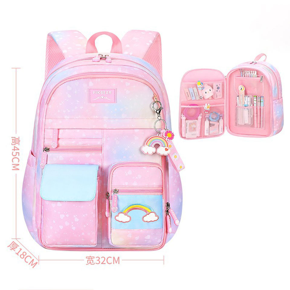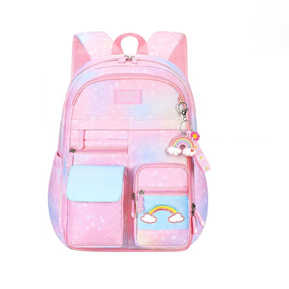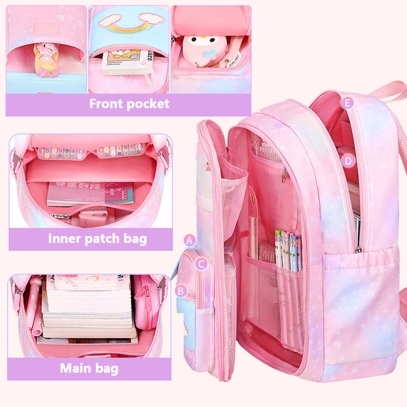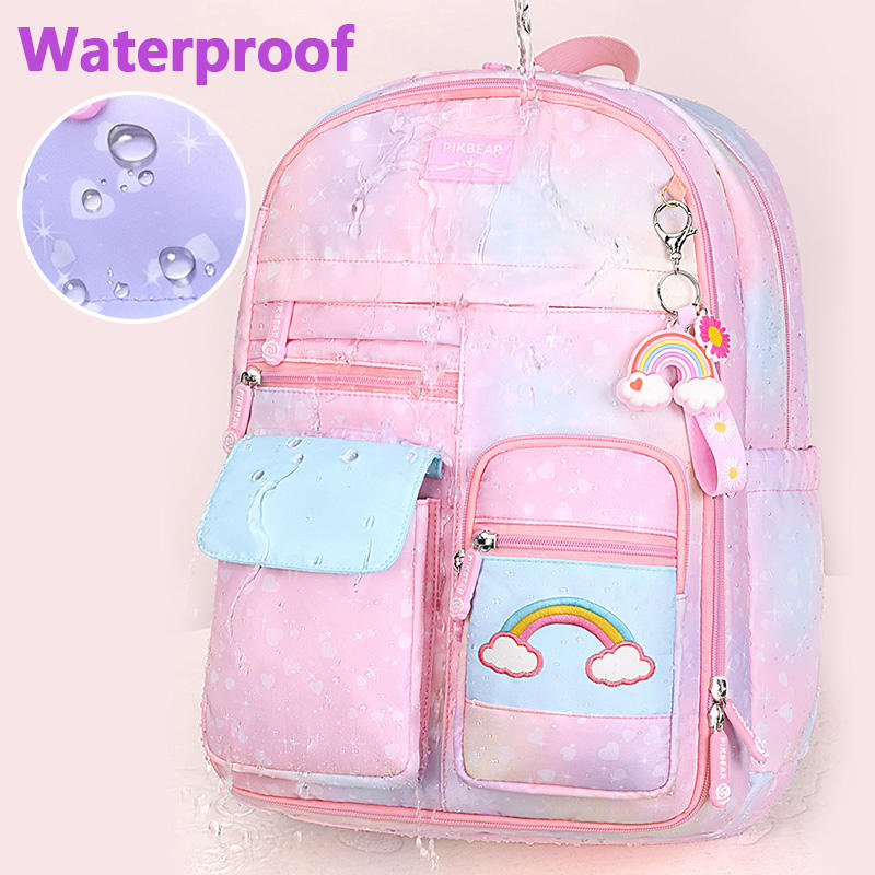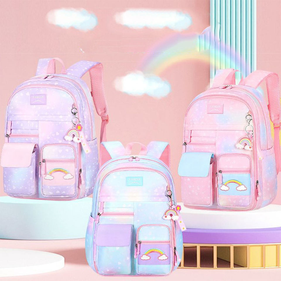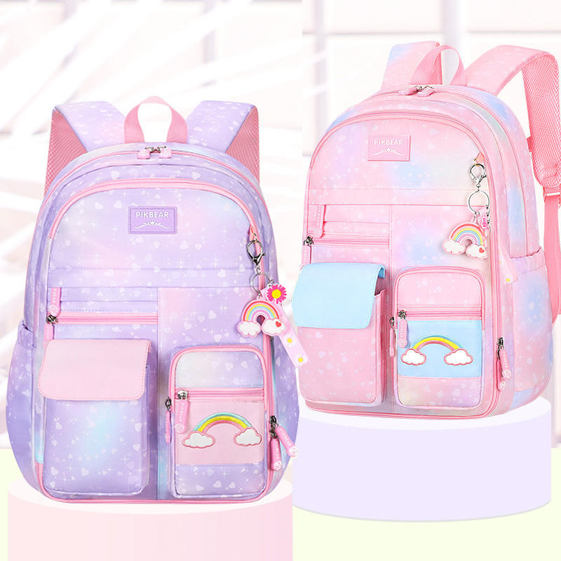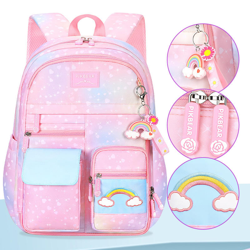 کوله پشتی مدل رنگین کمان یک کوله پشتی بچه گانه بسیار نرم و با دوام است.و کیفیت پارچه و دوخت بسیار بالایی دارد. بدنه کیف ضد آب waterproof و ضد خش می باشد. این کوله پشتی دارای دو محفظه اصلی بزرگ، یکی برای قرار دادن کتاب و وسایل و دیگری برای لوازم التحریر میباشد.در جلوی کیف 4جیب زیپدار و یک جیپ چسبی و در پشت کوله یک جیب زیپدار دیگر قرار دارد همچنین دارای جای مخصوص قرار دادن بطری آب در دو طرف کیف است. این محصول دارای سرزیپ های بزرگ طرحدار جهت سهولت استفاده کودکان از کیف و دارای دسته در بالای کیف برای دست گرفتن کودک می باشد. همچنین دارای بند کوله محکم برای حمل آسان و قابل تنظیم ( جهت جلوگیری از آسیب به ستون فقرات)است.