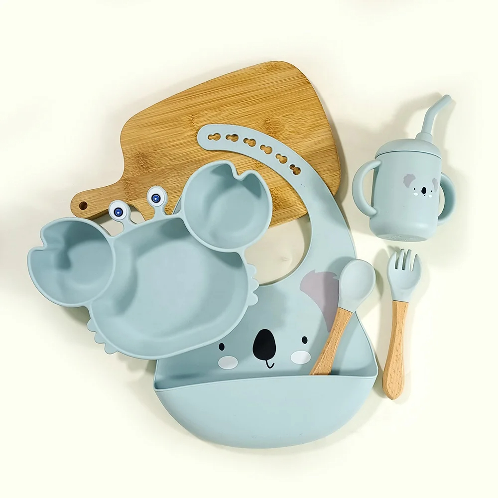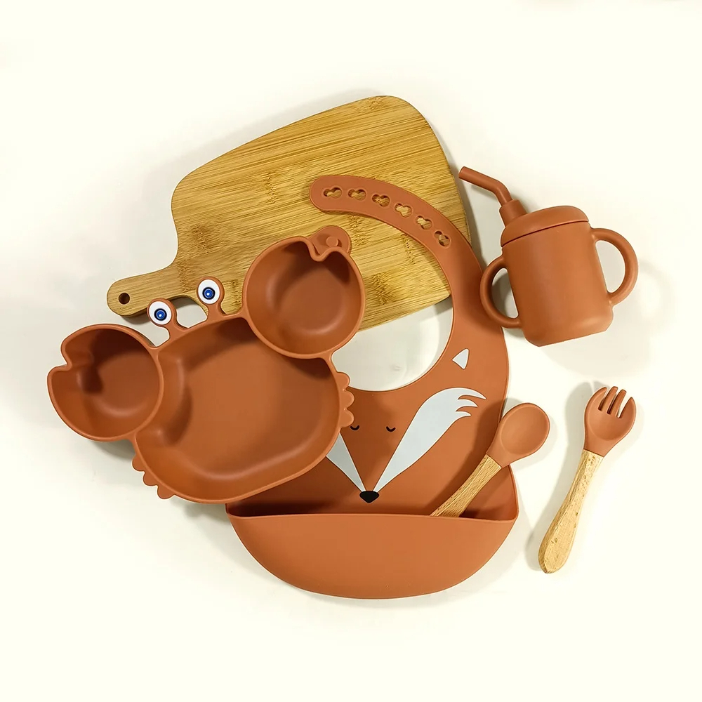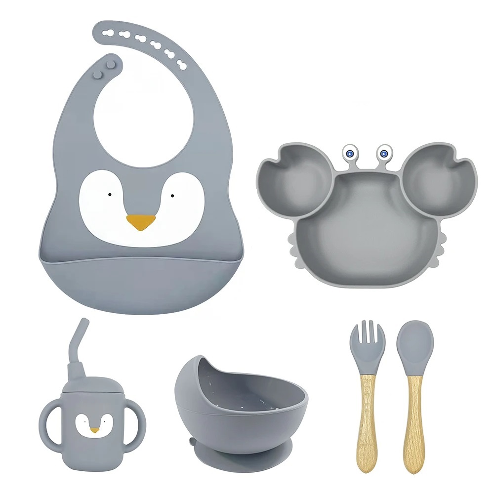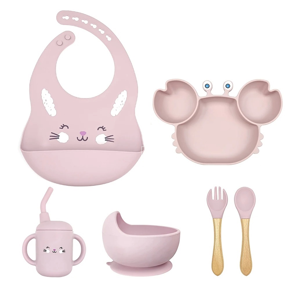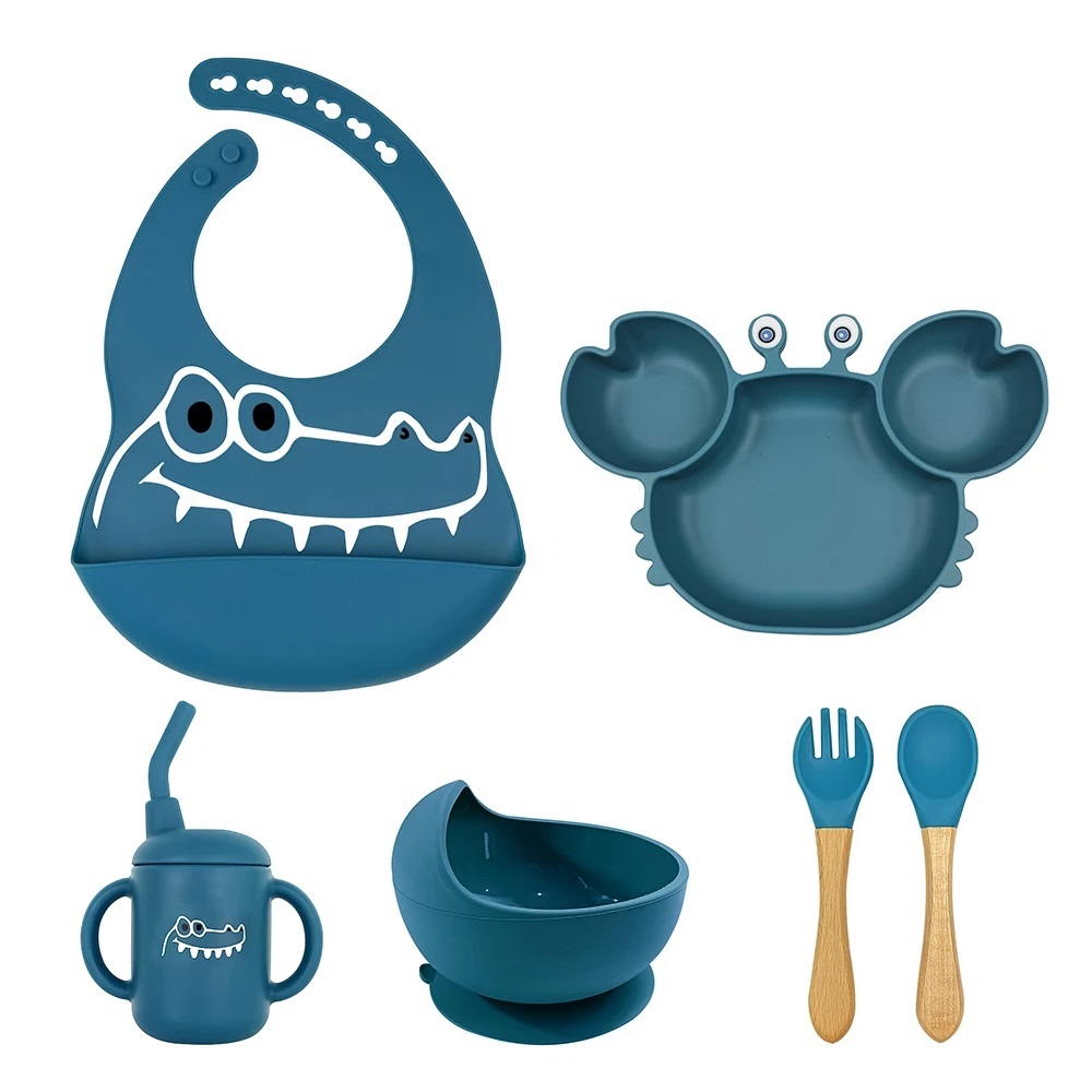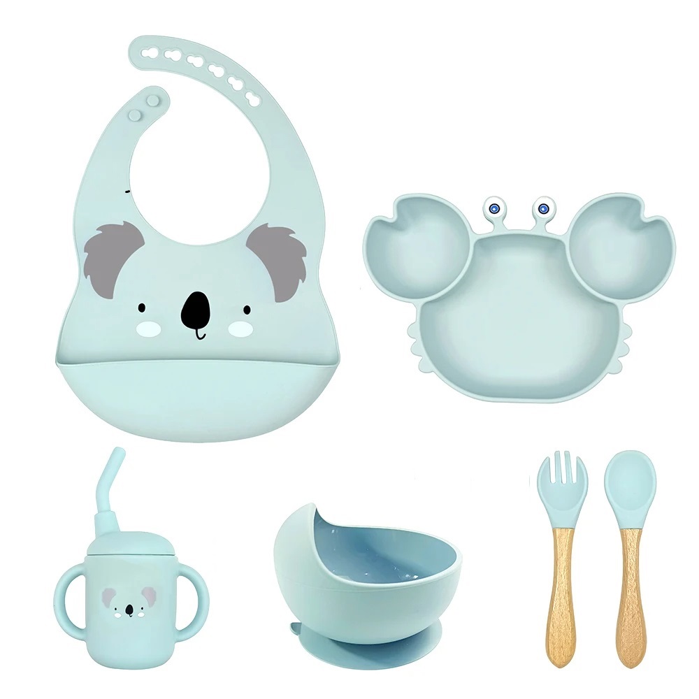 ظرف غذای سیلیکونی 6 تکه شامل پیشبند، بشقاب غذاخوری، کاسه، لیوان، قاشق و چنگال دسته سیلیکونی می باشد. جنس تمامی تکه ها سیلیکونی بوده و فاقد BPA ، لاتکس، Phthalate ، نیتروزامین است. از ویژگی های منحصربه فرد این ست می توان به آنتی باکتریال بودن، قابلیت استفاده در مایکروویو و فر، قابلیت قرار دادن ظروف در فریزر و شستشو با ماشین ظرفشویی اشاره کرد. لازم به ذکر است کاسه و بشقاب دارای پایه برای چسبیدن به سطوح می باشند .
