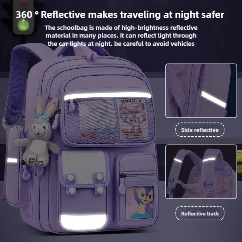 این کوله پشتی شیک و کاربردی با طراحی مدرن و رنگبندی متنوع، انتخابی عالی برای دانشآموزان است. جنس مقاوم و سبک آن، همراه با چندین جیب و محفظه جادار، حمل کتابها، دفترها و لوازم شخصی را بسیار آسان میکند. وجود جیبهای شفاف و توری، امکان دسترسی سریع به وسایل کوچک را فراهم کرده و آویز عروسکی بامزه، جلوهای خاص و دوستداشتنی به آن بخشیده است.